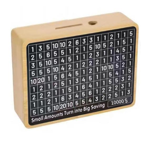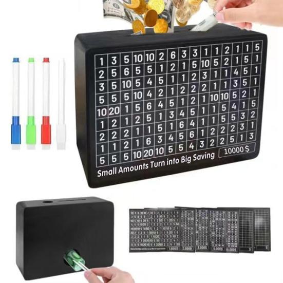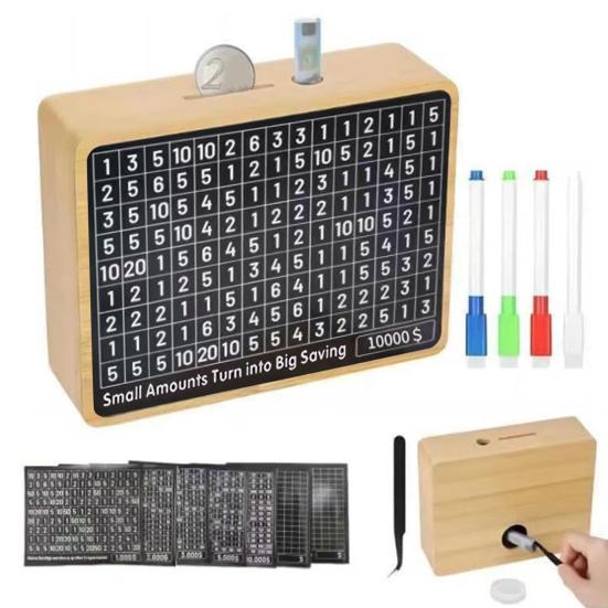 Задача экономии денег: Примите участие в полезном испытании по экономии денег с помощью этой коробки. Используйте предоставленный маркер для отслеживания прогресса ваших сбережений, превращая финансовую дисциплину в приятный игровой процесс.. Наблюдайте, как ваши сбережения растут с каждым отмеченным этапом.