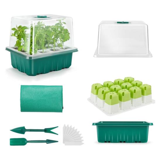 Полный комплект: В этот полный комплект входит 1 крышка, 1 силиконовый горшок для рассады, 1 нижняя основа, 1 набор приспособлений, 10 этикеток и 1 напольный коврик, что обеспечивает портативность и удобство для всех ваших потребностей в рассаде.