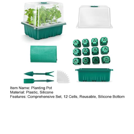 Представляем посадочный горшок — долговечное и многоразовое решение для ваших садовых нужд.. Этот лоток для рассады семян предназначен для легкого стимулирования роста молодых и нежных корней.. Слегка нажав на силиконовое дно, вы можете легко извлечь весь корневой ком, не повреждая корни.. В комплект входят 1 крышка, 1 силиконовый горшок для рассады, 1 нижняя основа, 1 набор гаджетов, 10 этикеток и 1 коврик, что делает его портативным и удобным вариантом для ваших садовых занятий.. Посадочный горшок имеет 12 ячеек, что позволяет выращивать до 12 саженцев одновременно.
