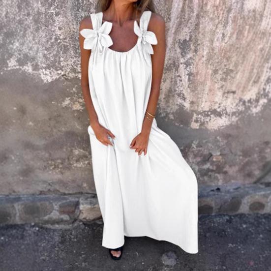 Это элегантное женское платье свободного кроя подходит для разных типов фигур.. Сплошной цвет и замысловатый трехмерный цветочный рисунок на лямках излучают изысканность и стиль.. Это платье из полиэстера имеет свободный силуэт и выполнено из мягкой и легкой ткани, обеспечивающей максимальный комфорт..