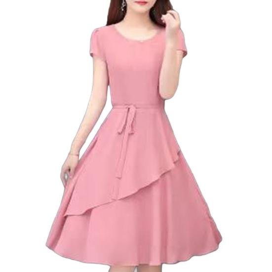 Это элегантное платье изготовлено из мягкого и легкого полиэстера, обеспечивающего комфорт в течение всего дня.. Шнуровка на талии подчеркивает изгибы фигуры, создавая изящный силуэт.. Это однотонное платье идеально подходит для разных случаев и излучает элегантность и стиль..