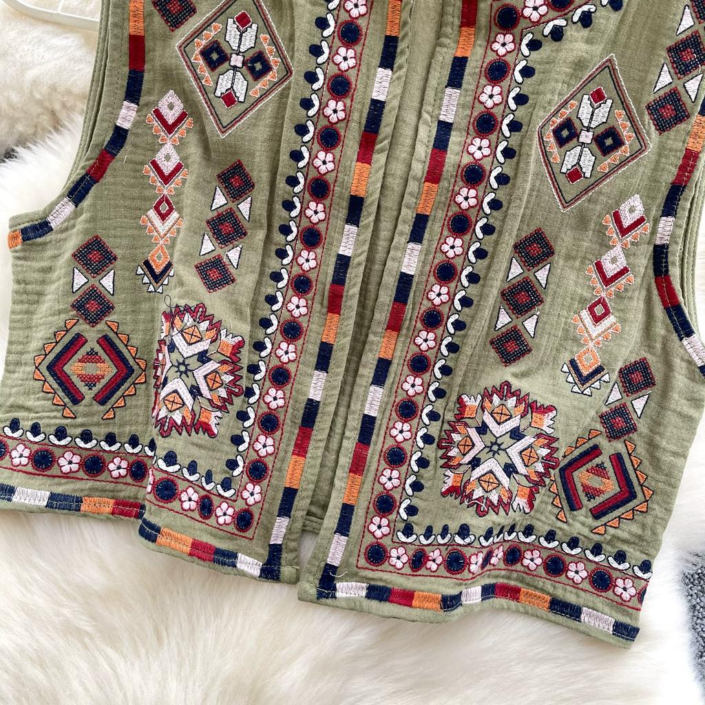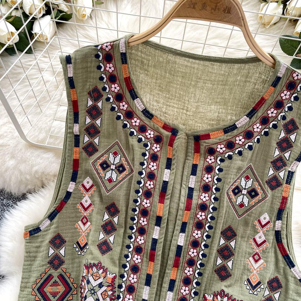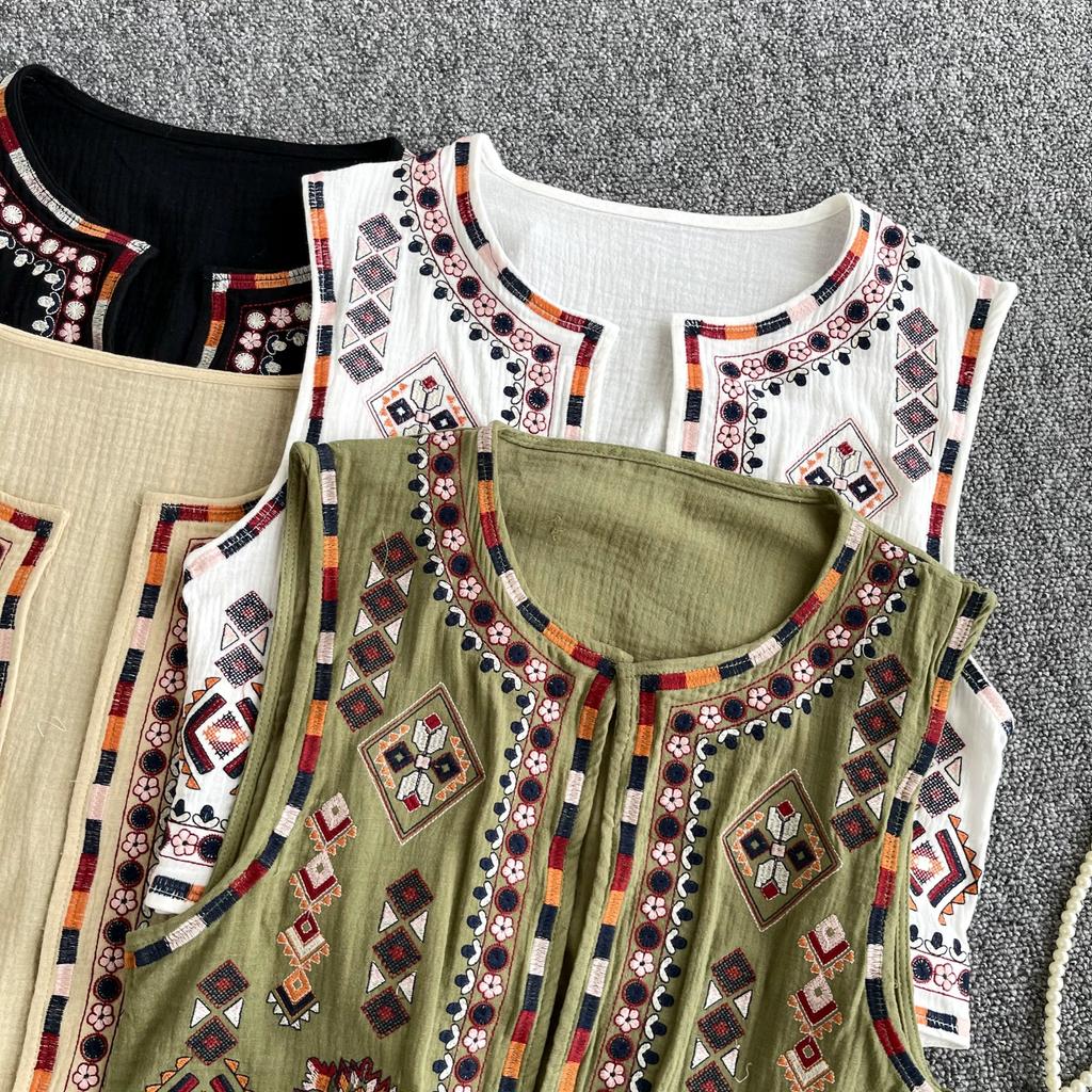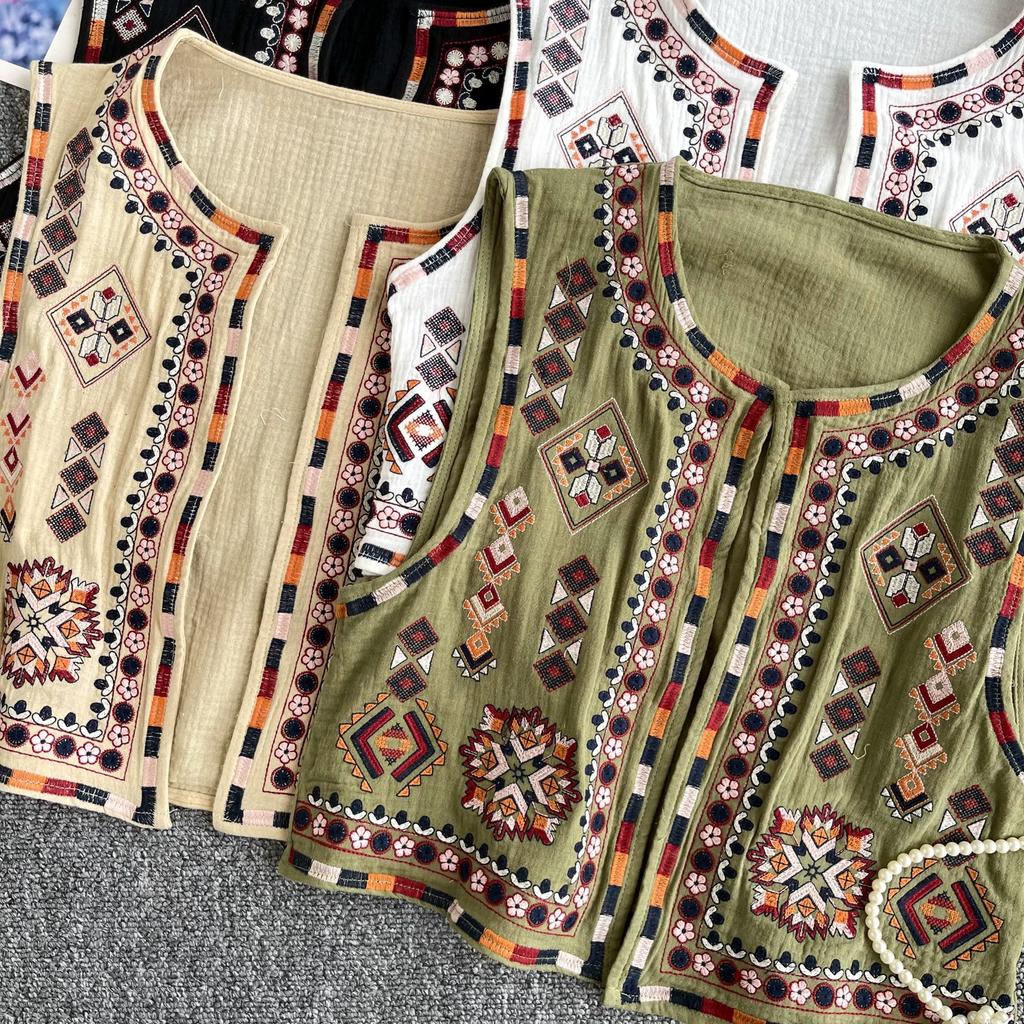 Новый национальный стиль цветочный кардиган жилет женский модный вышитый укороченный жилет винтажный О-образный вырез без рукавов женская верхняя одежда шикарный жилет топы