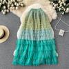 2025 Новые летние юбки из сетчатого тюля с градиентом и разноцветными радужными полосками, женские длинные юбки-макси, модная элегантная одежда с эластичной талией