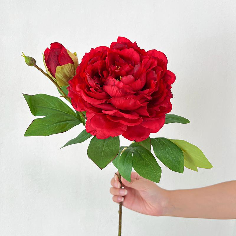 Состав:1 большой цветок пиона + 1 маленький бутон + несколько листьев.