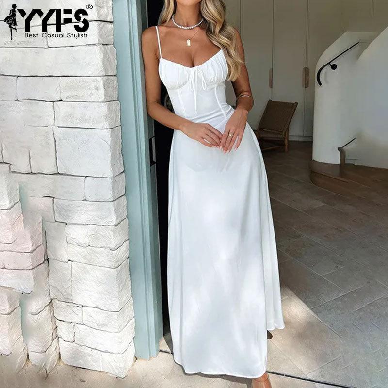 YYFS Женская мода лето весна сплошной цвет печати без рукавов подтяжки с высокой талией повседневные платья
