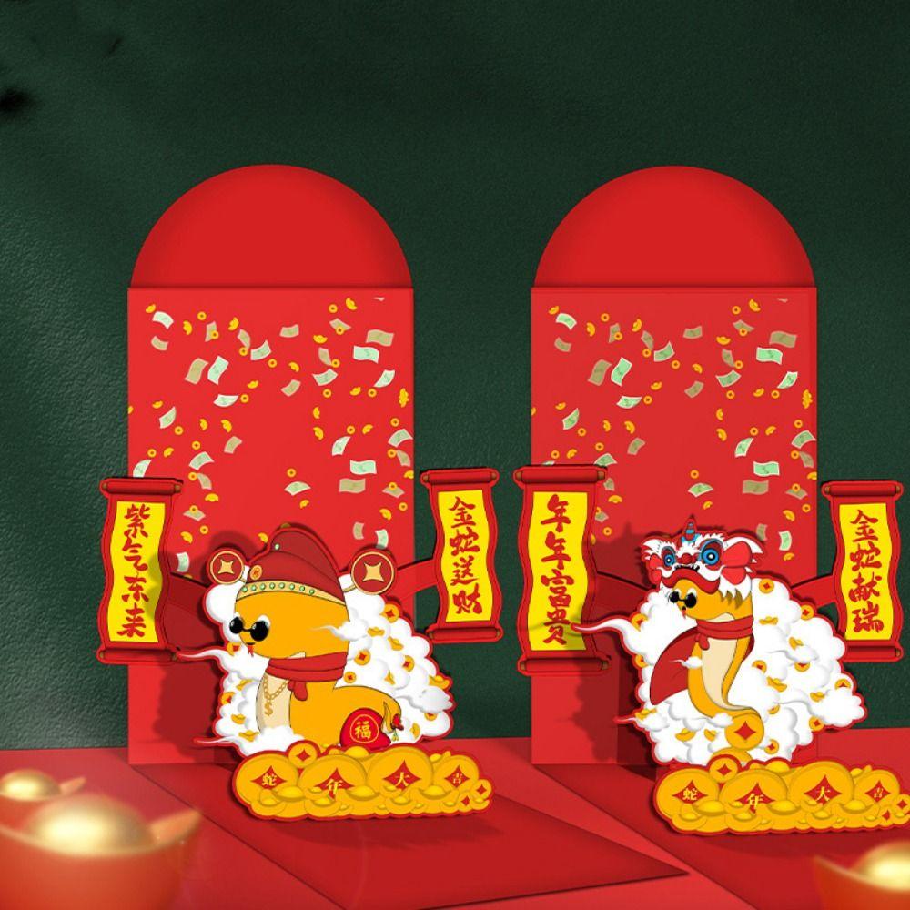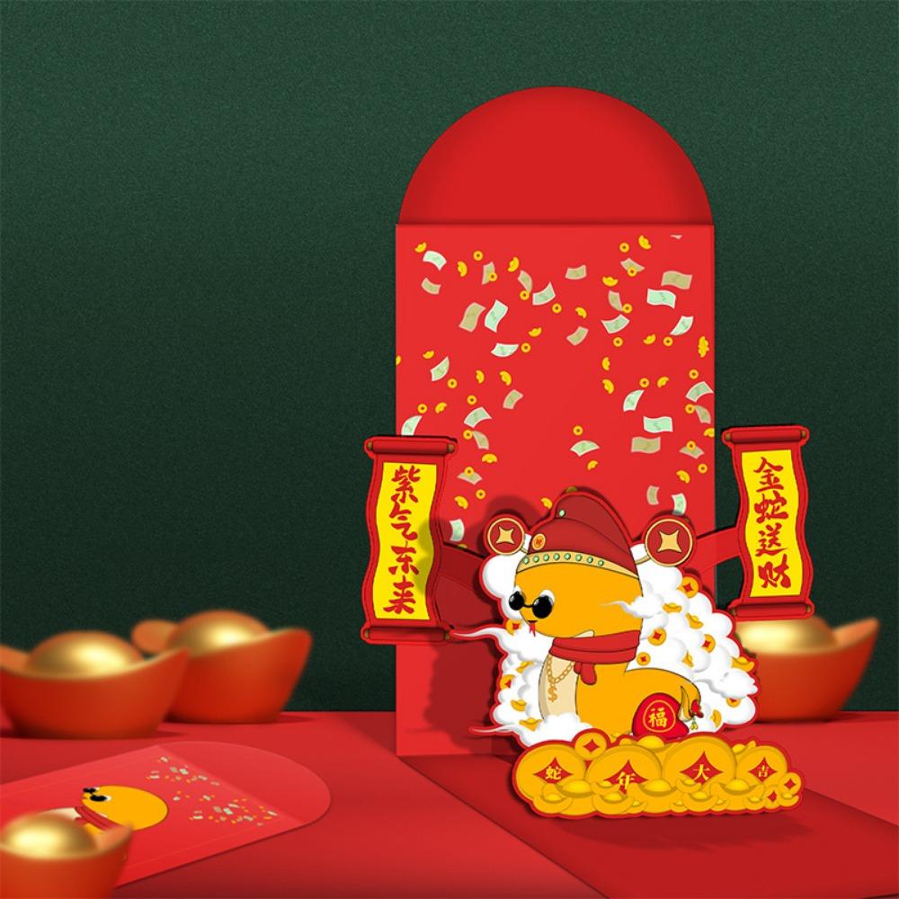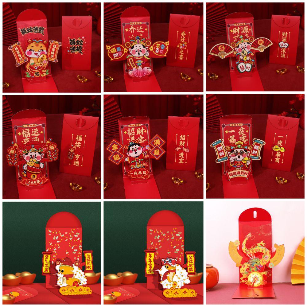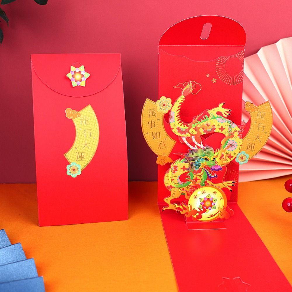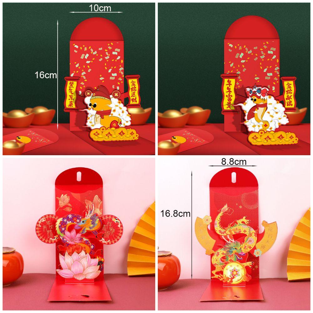 Мультяшные поздравительные открытки с драконом Лун Красный новогодний конверт Креативный мешочек с благословениями Китайский Новый год
