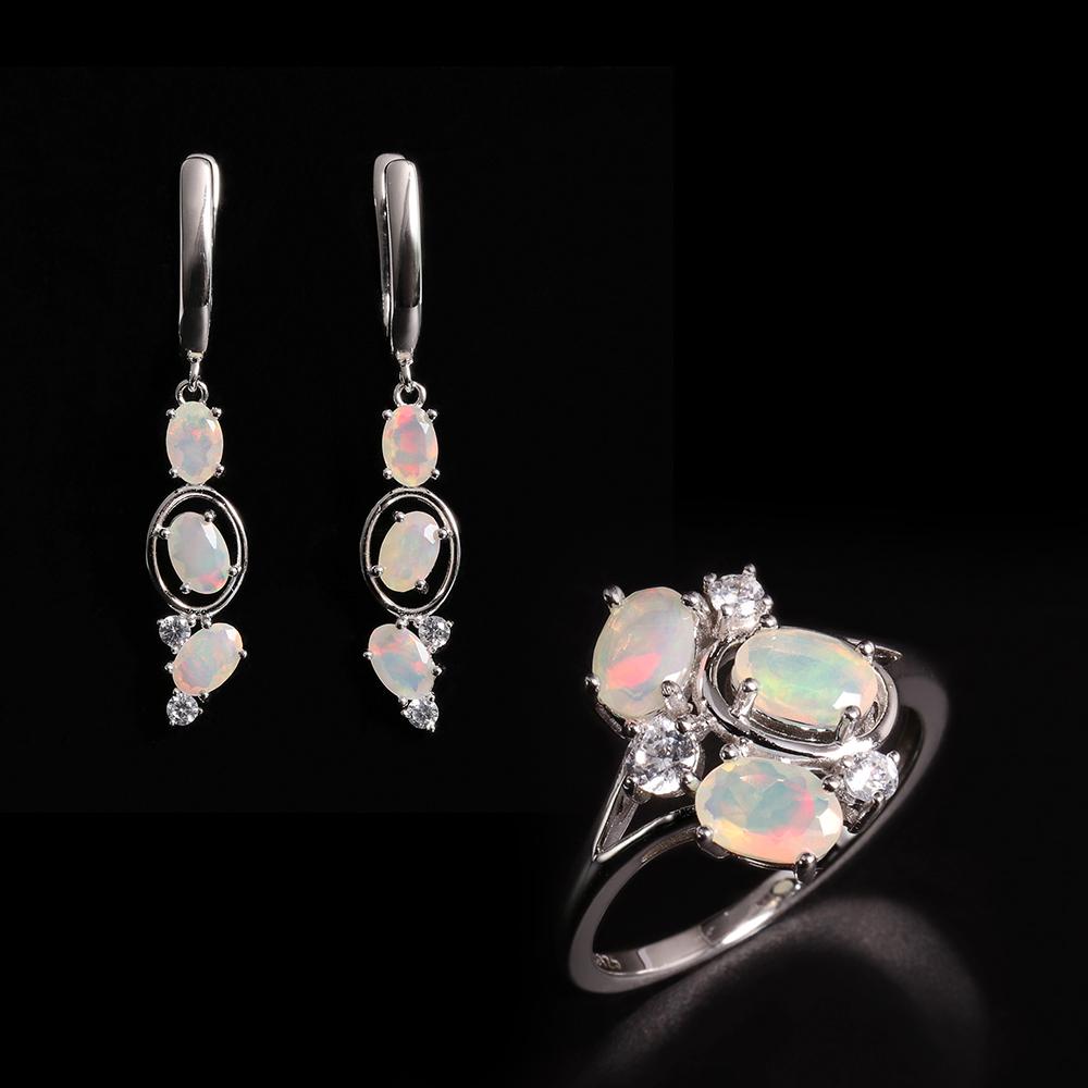Элегантные ювелирные изделия из серебра 925 пробы с натуральным опалом, камнем, рожденным в октябре, в комплекте с серьгами для женщин и девочек, в подарок на банкет и день рождения