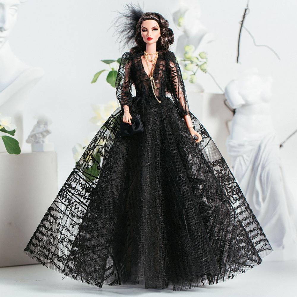 Роскошный комплект черного кружевного платья, платье принцессы для куклы-супермодели 30 см/для кукол BJD 1/6