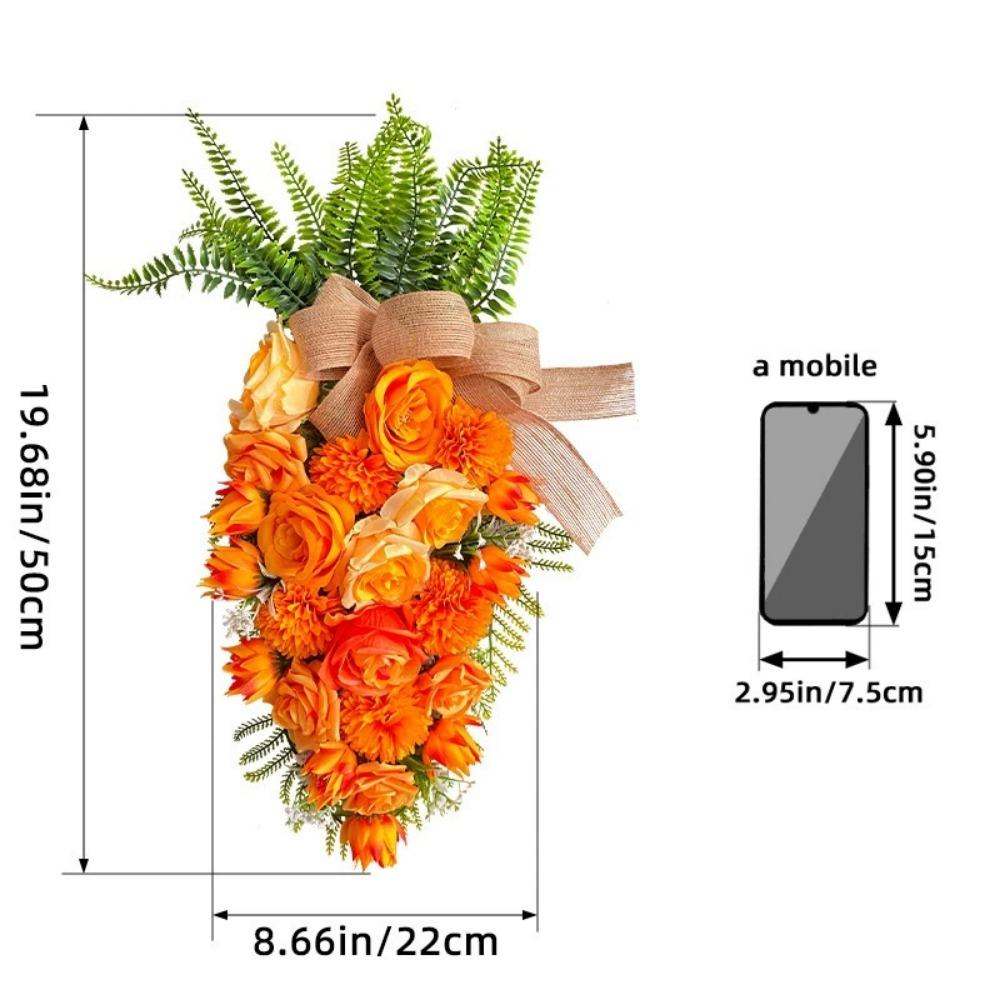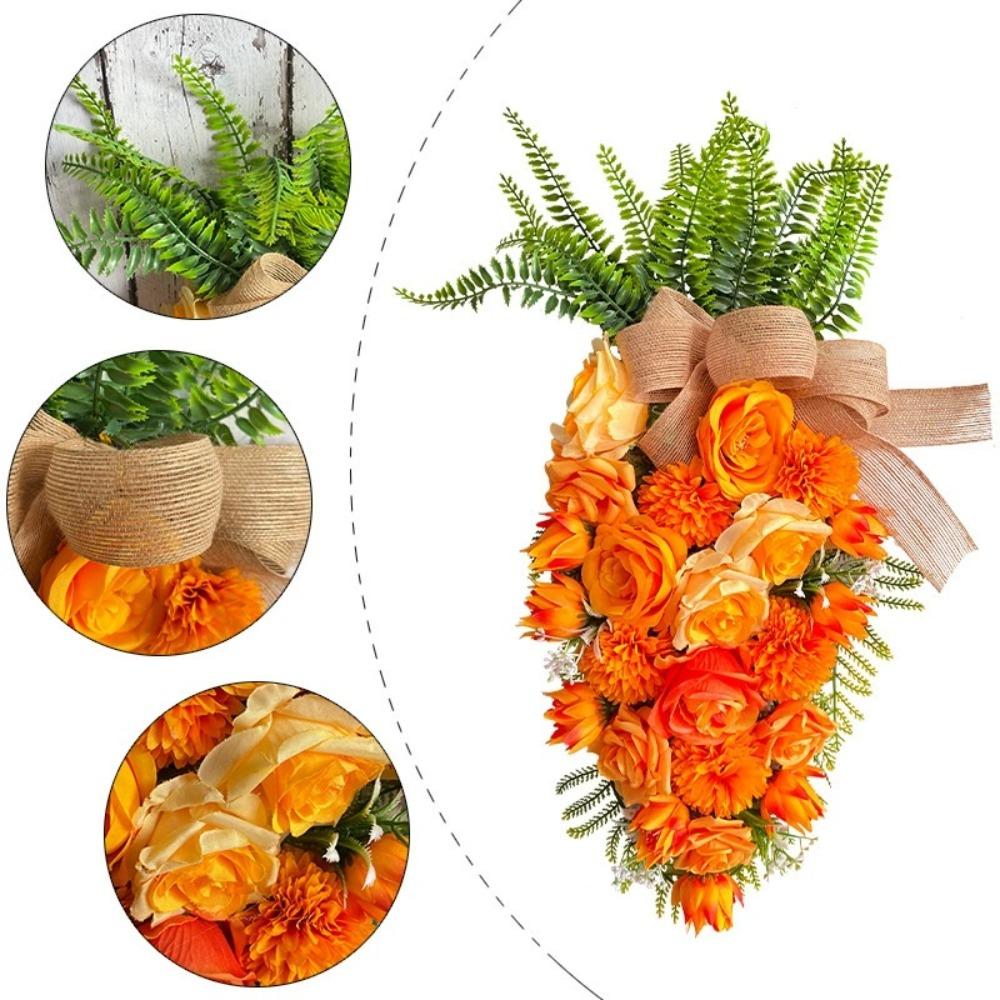 Roses Carrot Wreath Easter Decorations Artificial Flowers Wreath Orange Carrot Swag Easter Door Decoration Spring Decor for Door Window