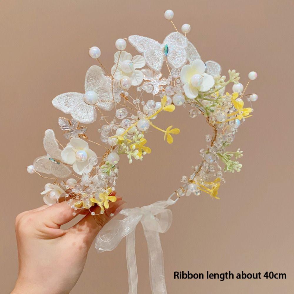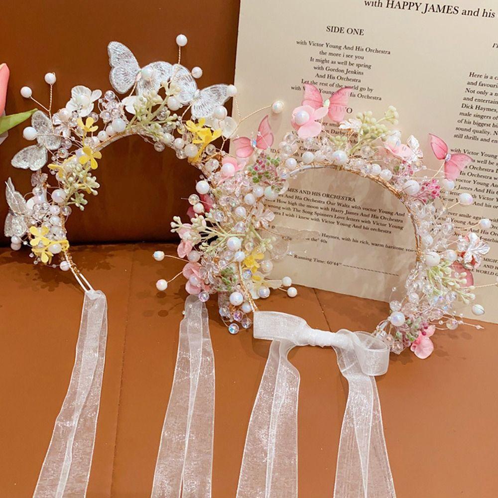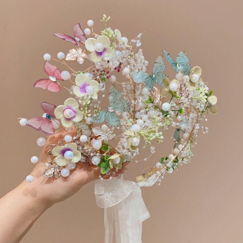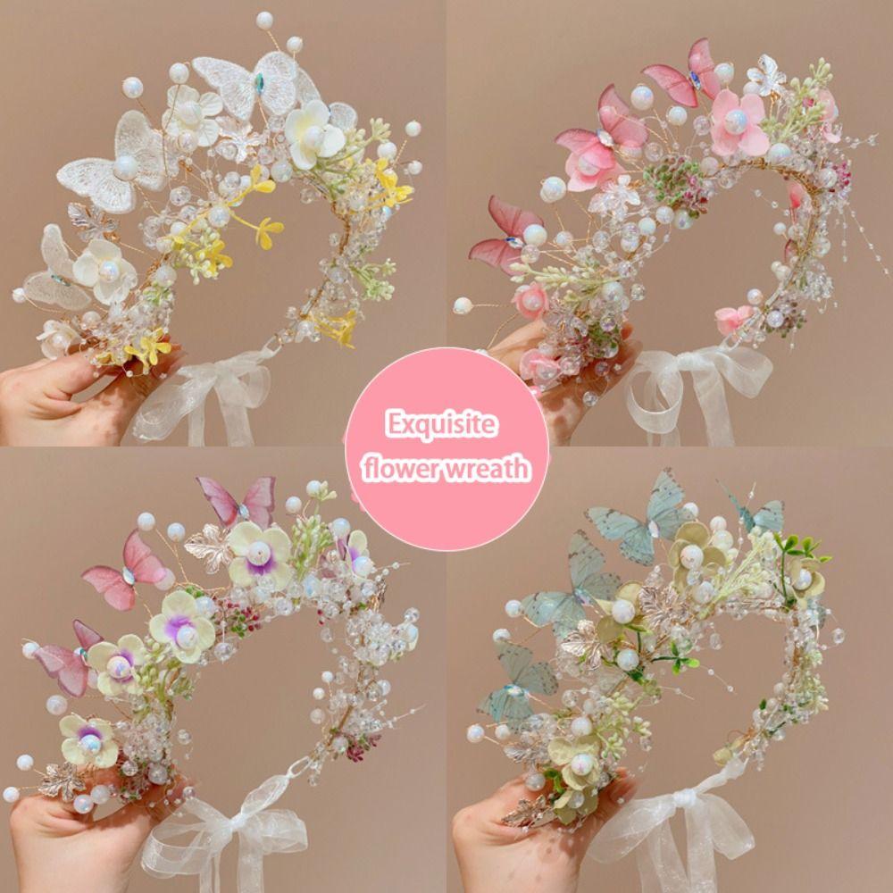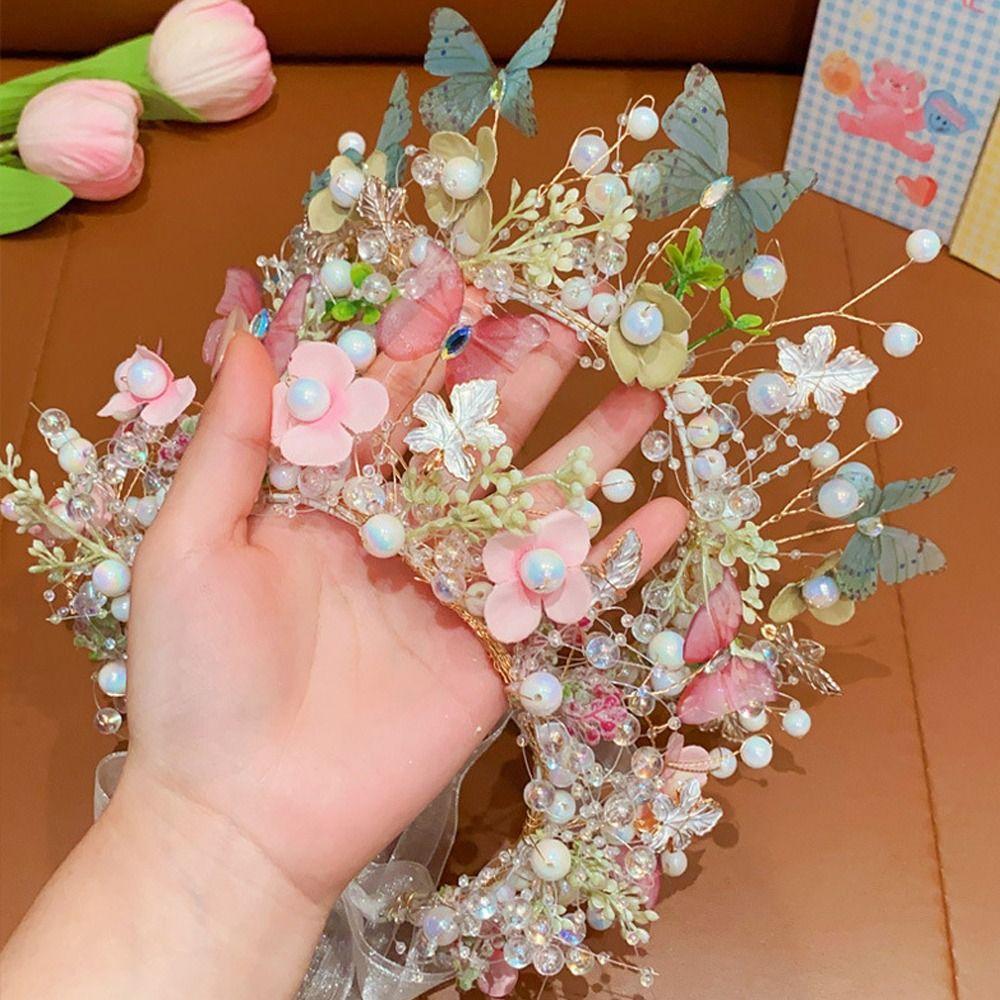 Бабочка Цветочная Корона Гирлянда Головной Убор Лесной Детский Венок Принцесса Головная Повязка Праздничная Вечеринка