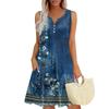 Женские летние платья Свободные сарафаны без рукавов с V-образным вырезом Платье с карманами