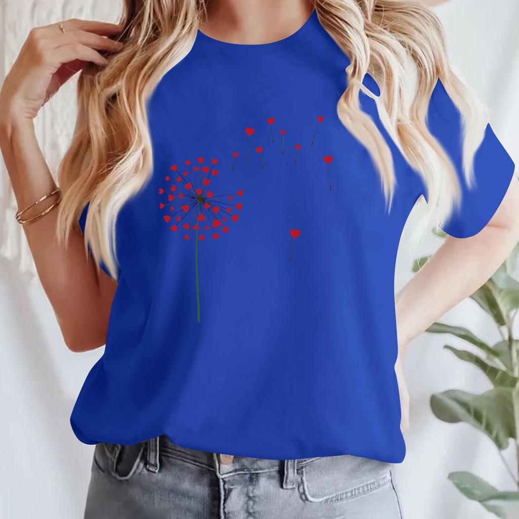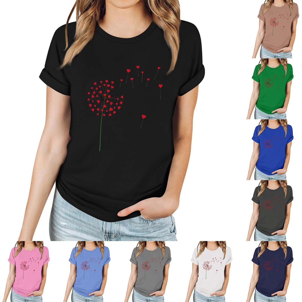 Женская повседневная футболка с принтом, пуловер с круглым вырезом, топ с короткими рукавами