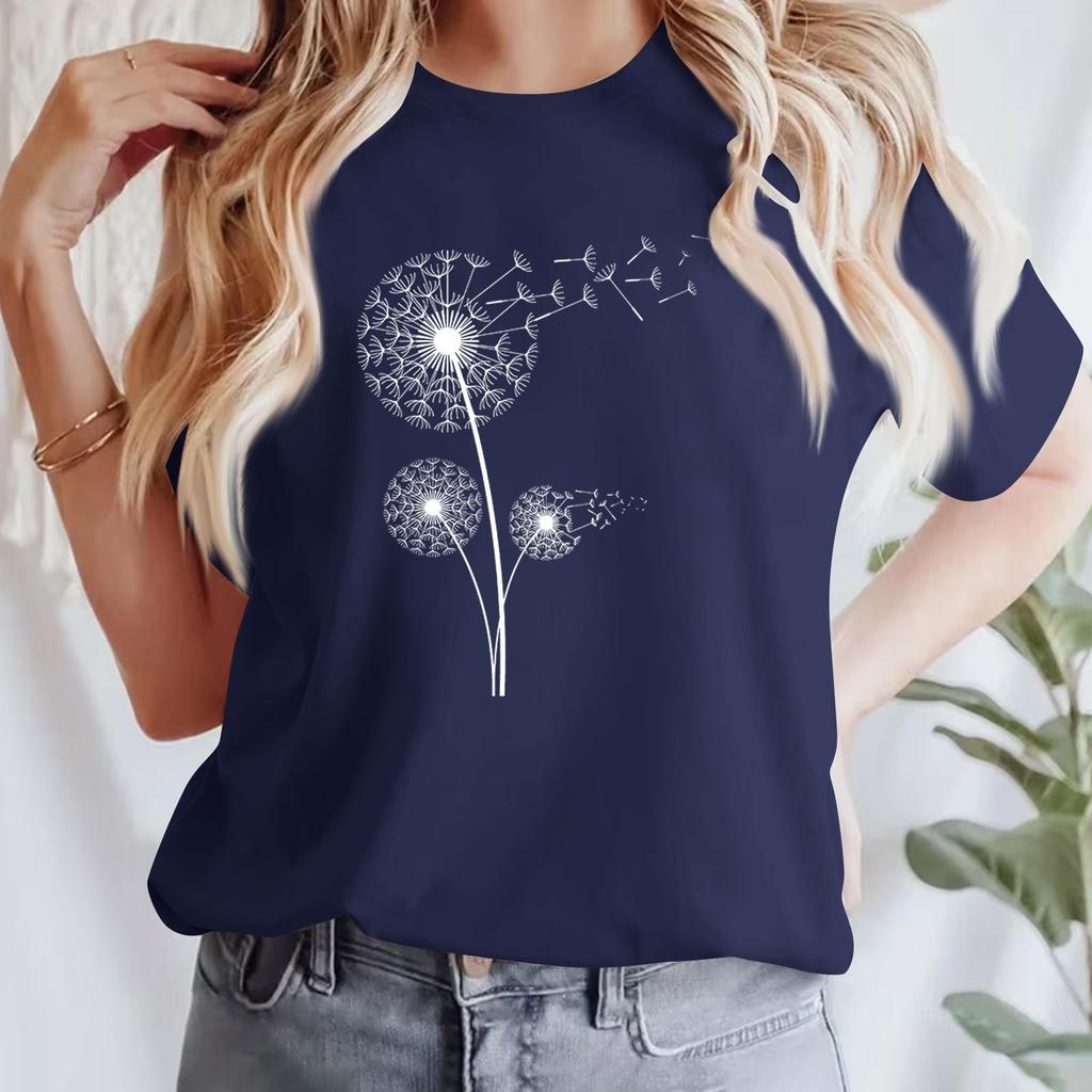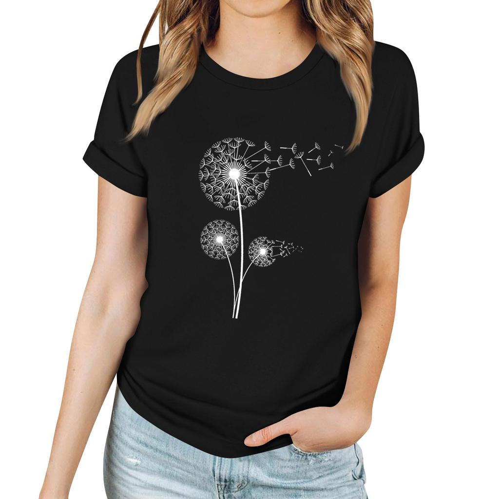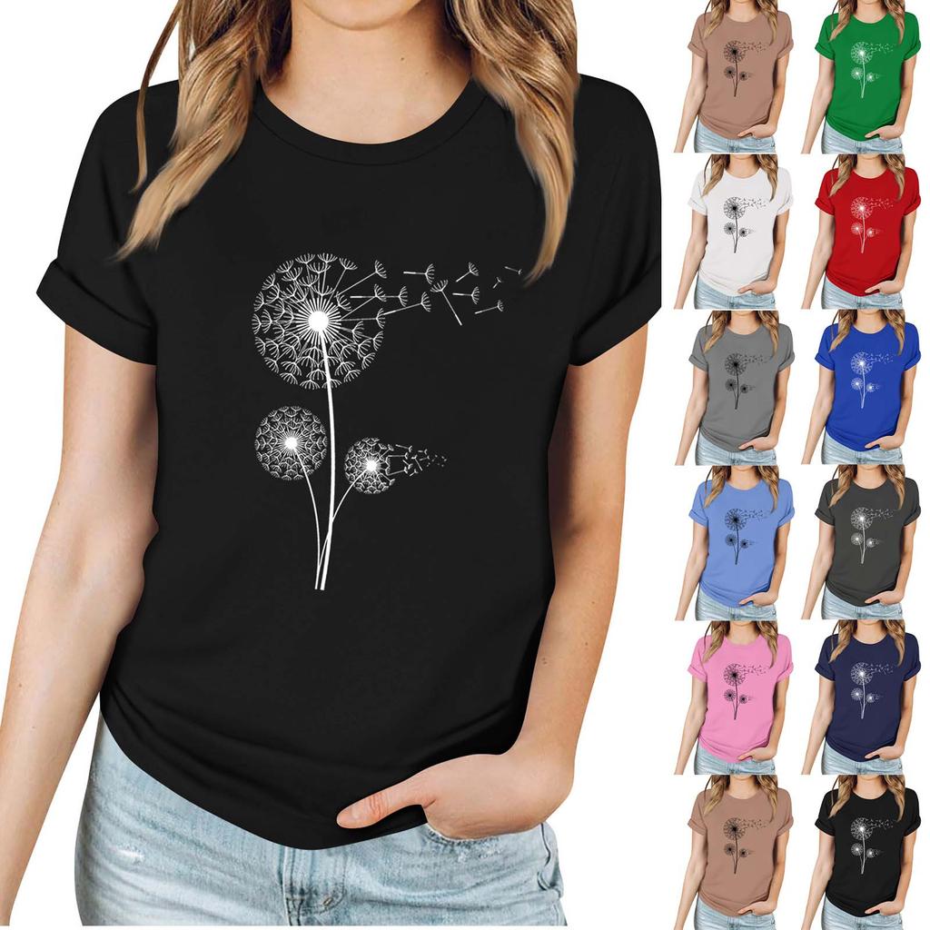 Женская повседневная футболка с принтом, пуловер с круглым вырезом, топ с короткими рукавами