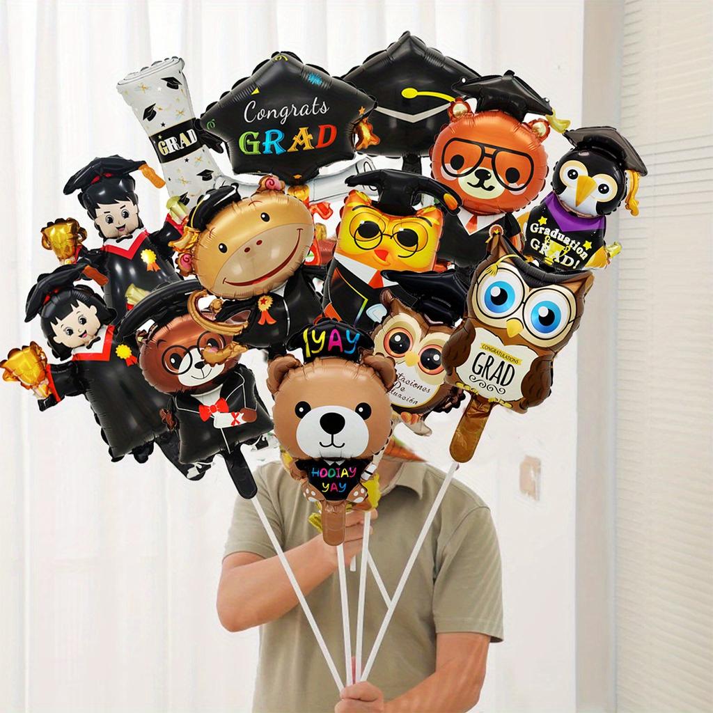 10 случайных мини-шариков из алюминиевой фольги для выпускного сезона, докторская шапочка, сова, плюшевый мишка, используются для дней рождения, выпускных церемоний, школьных годовщин