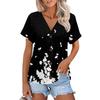Женская модная повседневная футболка с короткими рукавами и V-образным вырезом, цветочным принтом и застежкой на пуговицы