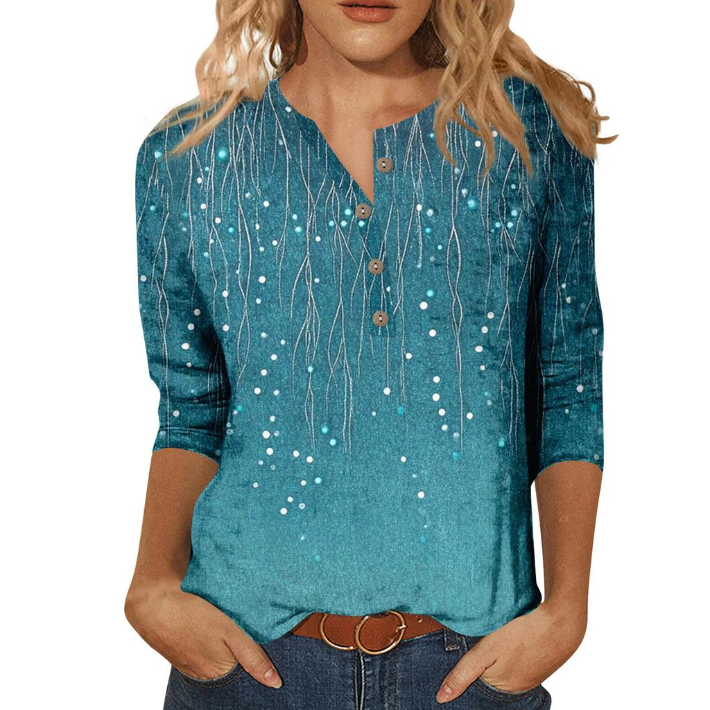 Женская мода цветочный принт 7/10 рукав свободный круглый вырез топ