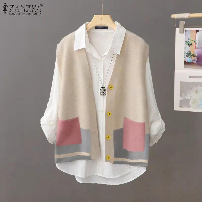ZANZEA Женские винтажные жилеты без рукавов с цветными карманами