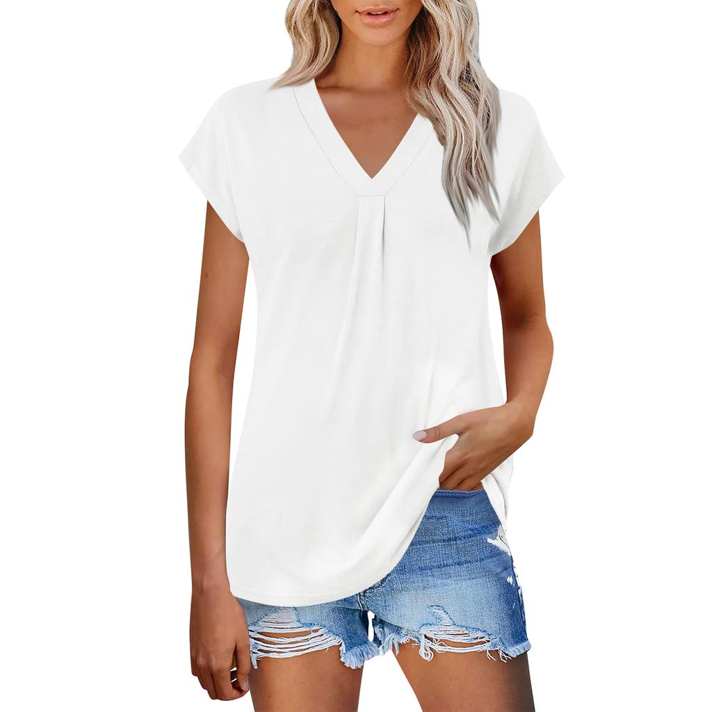 Женские летние топы, повседневные, с оборками, коротким рукавом, круглым вырезом, свободные, плиссированные футболки