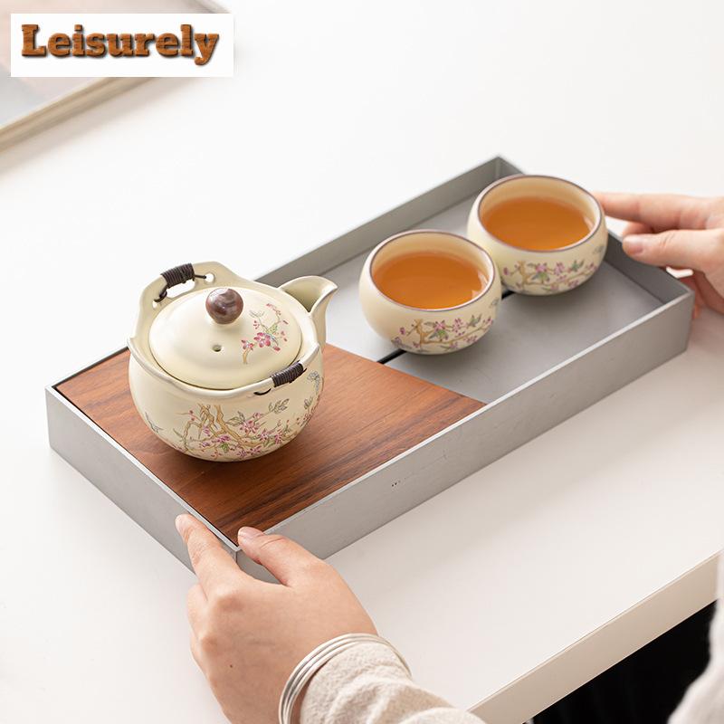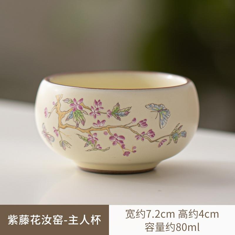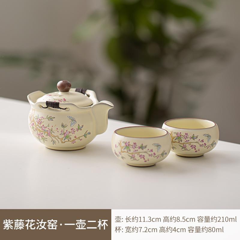 Изысканный заварочный чайник Wisteria Flower Ru Kiln Hand Grab, набор для заваривания чая Zen, 1 горшок, 2 чашки, набор для заваривания чая, посуда для чая Kung Fu, аксессуары