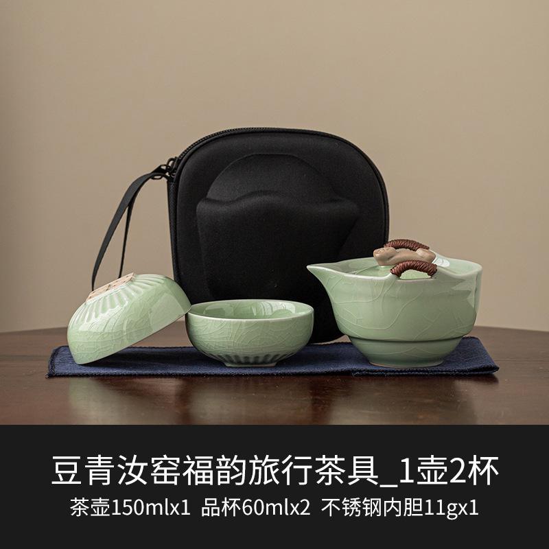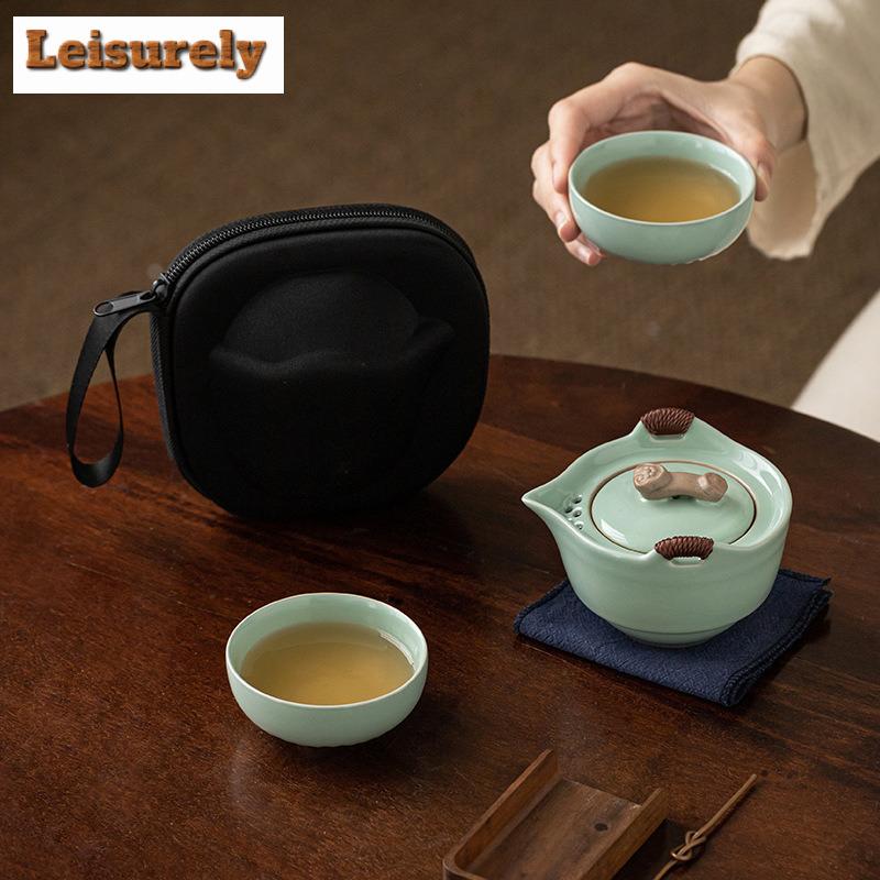 Китайский ручной чайный сервиз Ru Kiln Kuaike Cup, традиционный набор из 1 чайника и 2 чашек, переносной чайный набор в мешках для хранения, китайский дорожный чайный сервиз