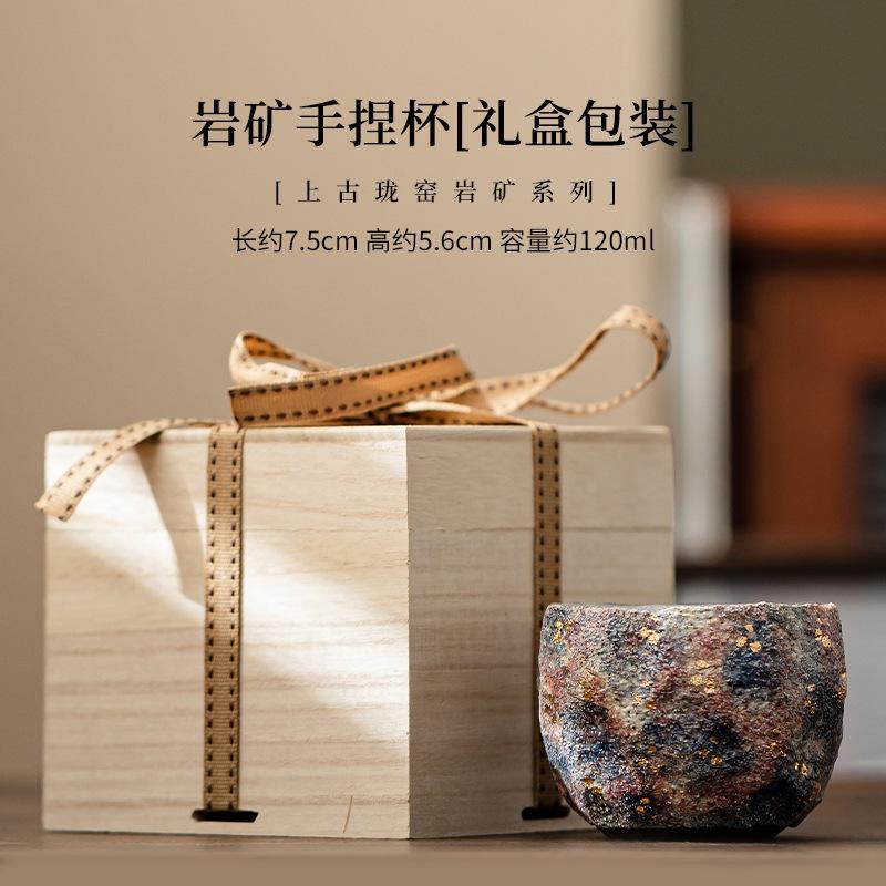 120 мл старинная длинная горная горная чаша ручной работы из керамики, чашка для дегустации чая, золотая подарочная коробка с изображением кунг-фу