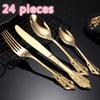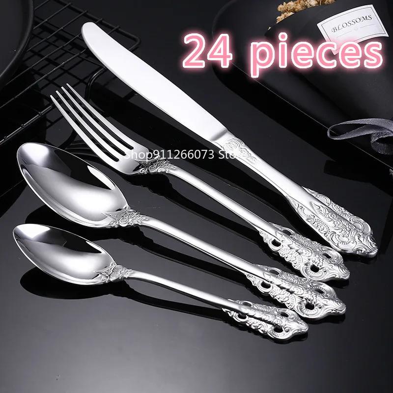 6 наборов по 24 предмета из нержавеющей стали марки 304, столовые приборы в стиле ретро-дворца, столовые приборы для стейков в стиле вестерн, позолоченная высококачественная столовая посуда — купить товар онлайн с бесплатной доставкой по всему миру!