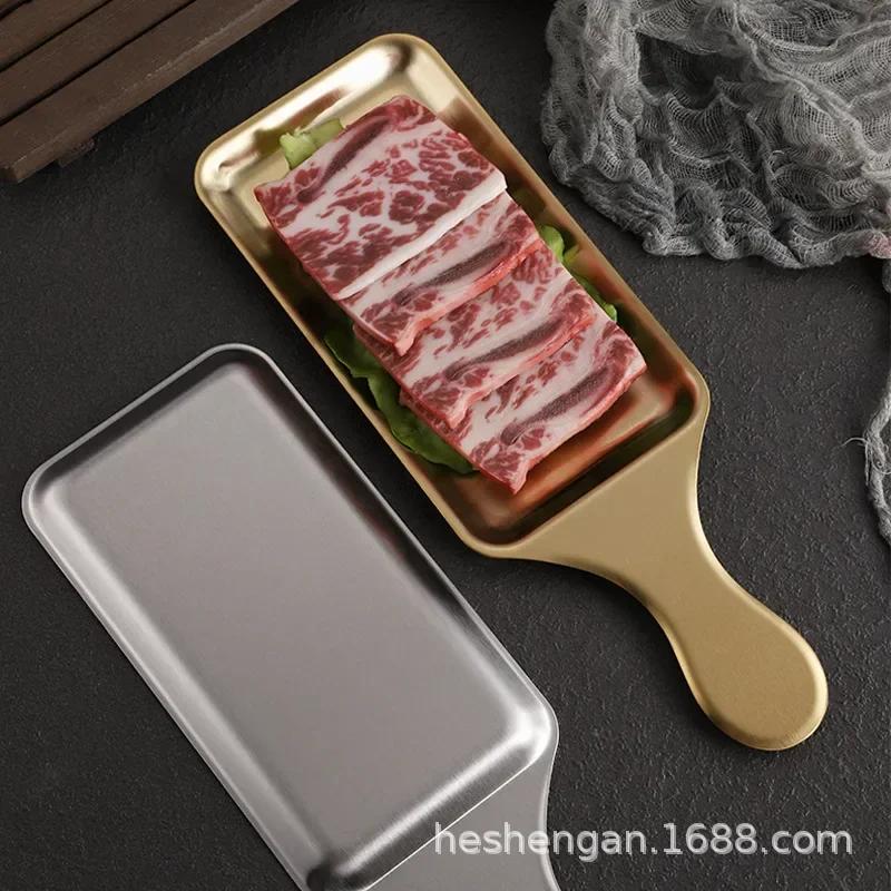 Прямоугольная тарелка из нержавеющей стали, тарелка для стейков в западном стиле, золотистая тарелка для барбекю с плоским дном, поднос для закусок