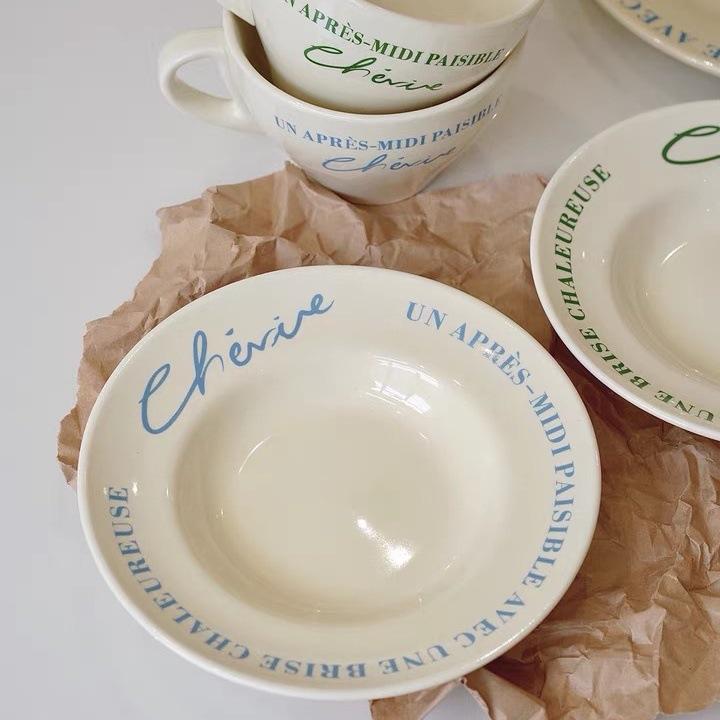 Корейский стиль ретро французский крем кофейная чашка блюдце интернет знаменитость фото завтрак чашка керамическая тарелка столовые приборы