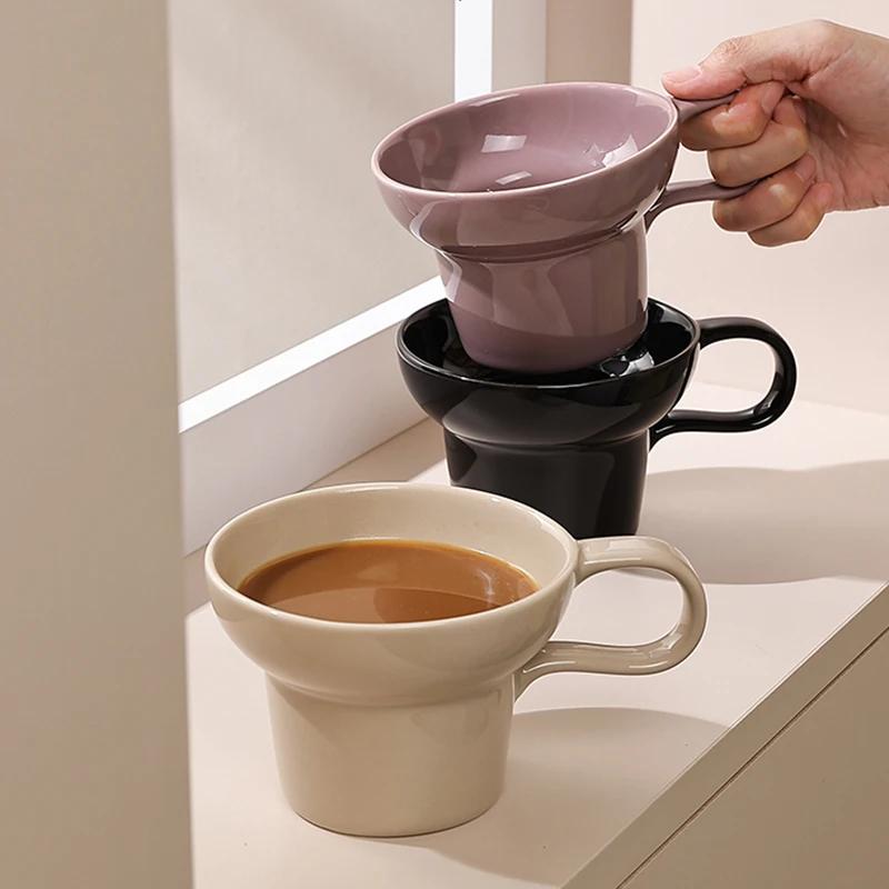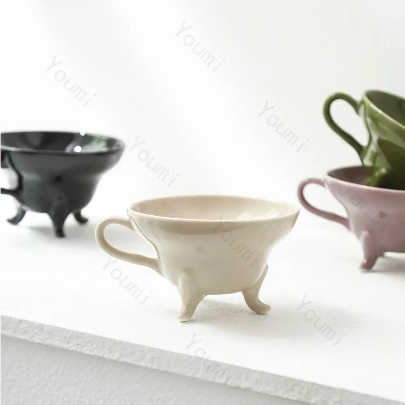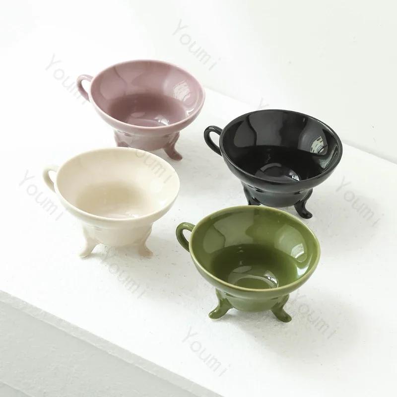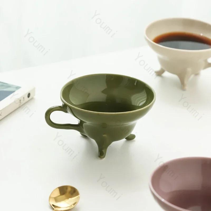 Творческие однотонные керамические кофейные чашки для десертов высокого класса, изысканный чайный сервиз для домашнего завтрака, йогуртовая чашка