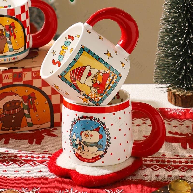 Рождественские подарки, мультяшные керамические кружки, винтажные изысканные пары, кофейные чашки, бытовые чашки для завтрака и молока