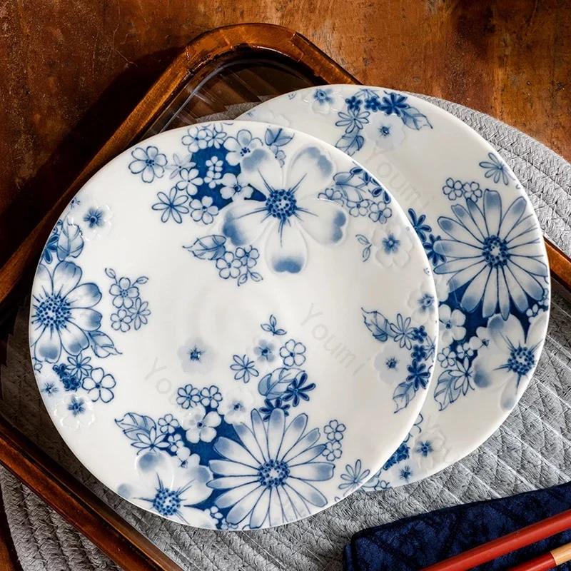 Ретро-стиль Цветы Керамическая тарелка Главная Ежедневный Послеобеденный чай Десерт Закуски Тарелки Высокого класса Ресторан Вкусные блюда Суповая тарелка
