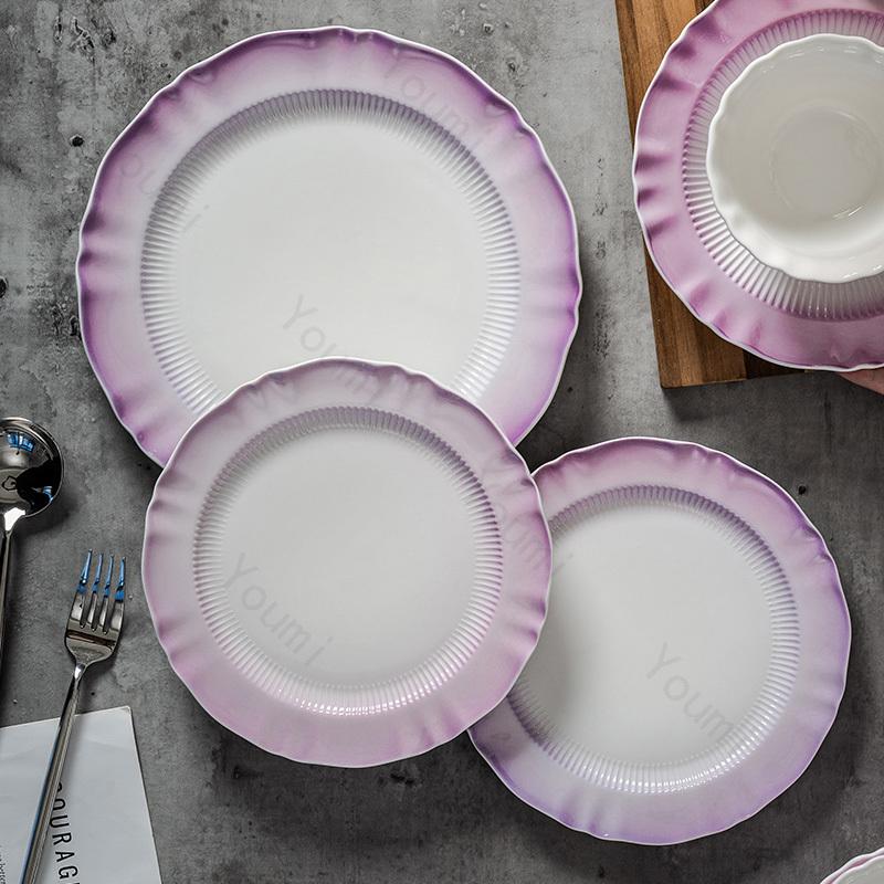 Легкая роскошная фиолетовая керамическая тарелка для изысканных блюд в ресторане высокого класса, рыбная тарелка, десертные тарелки для послеобеденного чая во французском стиле