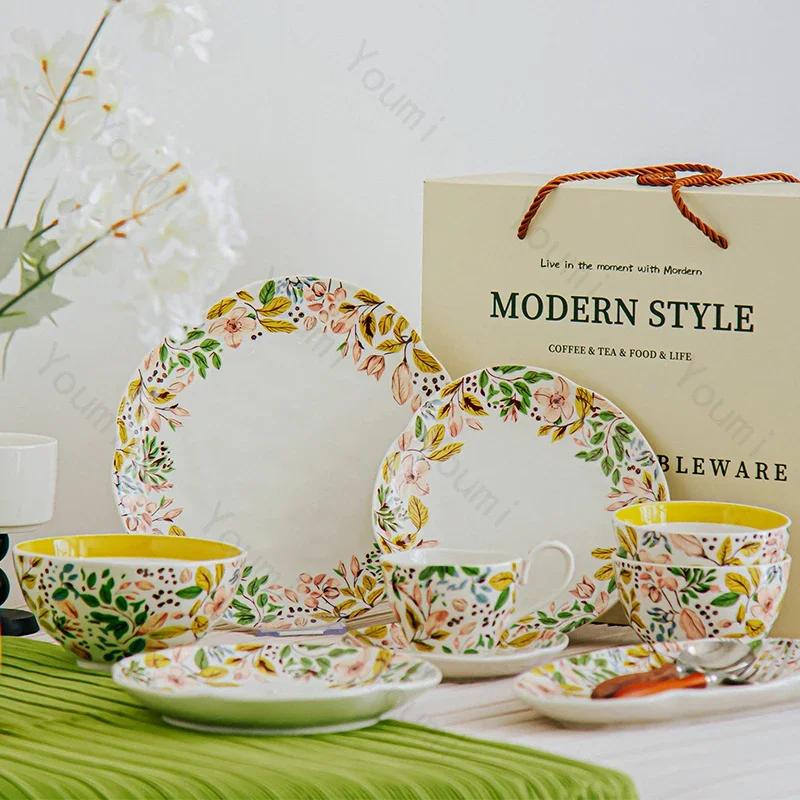 Креативные нестандартные керамические тарелки Изысканные цветы Торт Десертная тарелка Домашние деликатесы Рамен Чаша Отдых Офис Кофейная чашка
