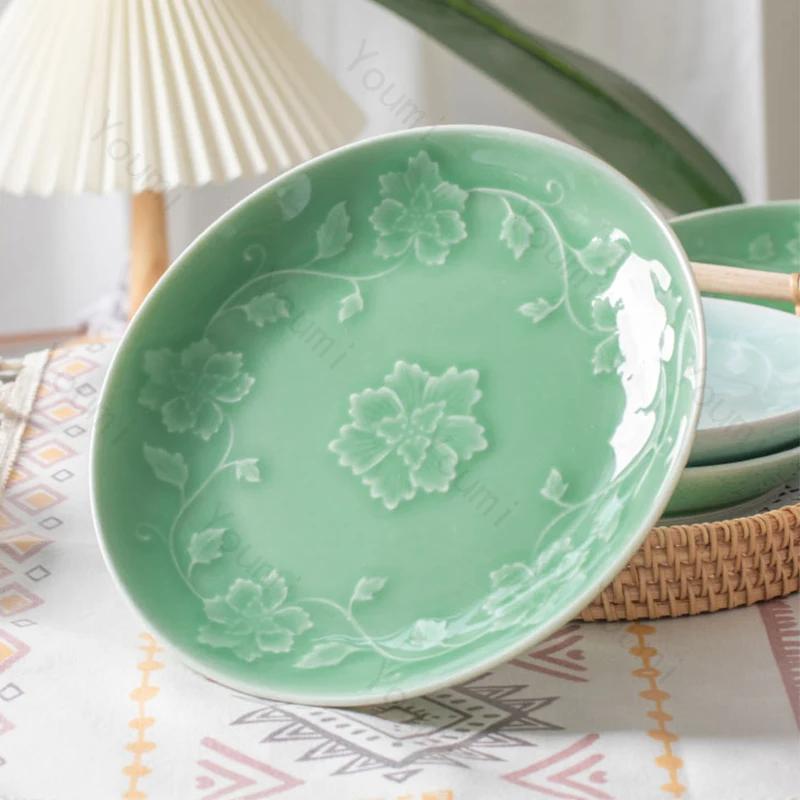 Креативная рельефная керамическая тарелка с цветами, высококлассные обеденные тарелки в китайском стиле, тарелка для вкусных блюд, тарелка для салата, изысканная домашняя посуда