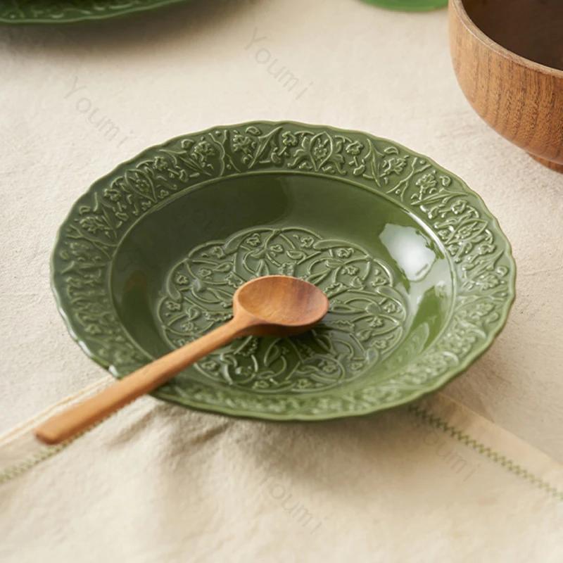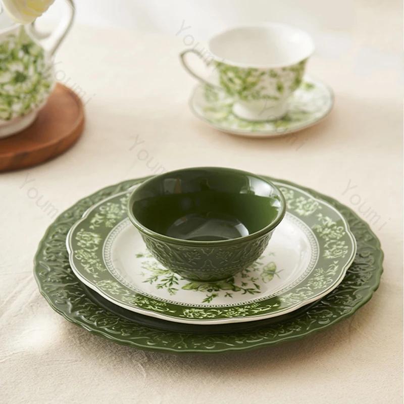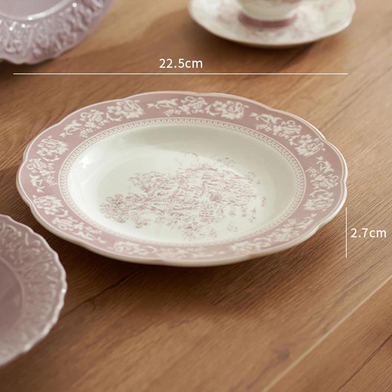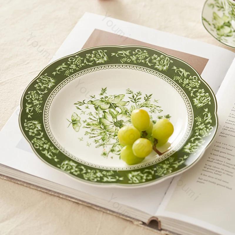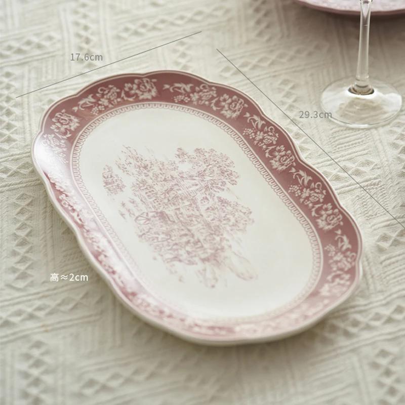 Винтажные керамические тарелки во французском стиле, большая бытовая тарелка для рыбы, легкая роскошная изысканная тарелка для суши, цветы, высококачественная посуда