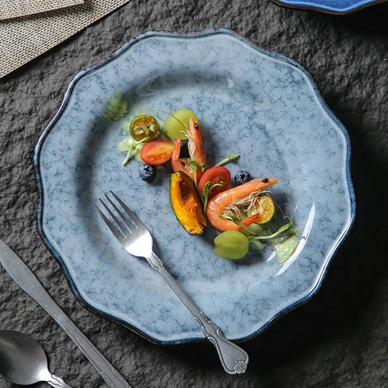 Ретро Однотонная Керамическая Тарелка Креативные Рестораны Десертная Фруктовая Тарелка Дом Вкусные Блюда Обеденные Тарелки Уникальная Посуда
