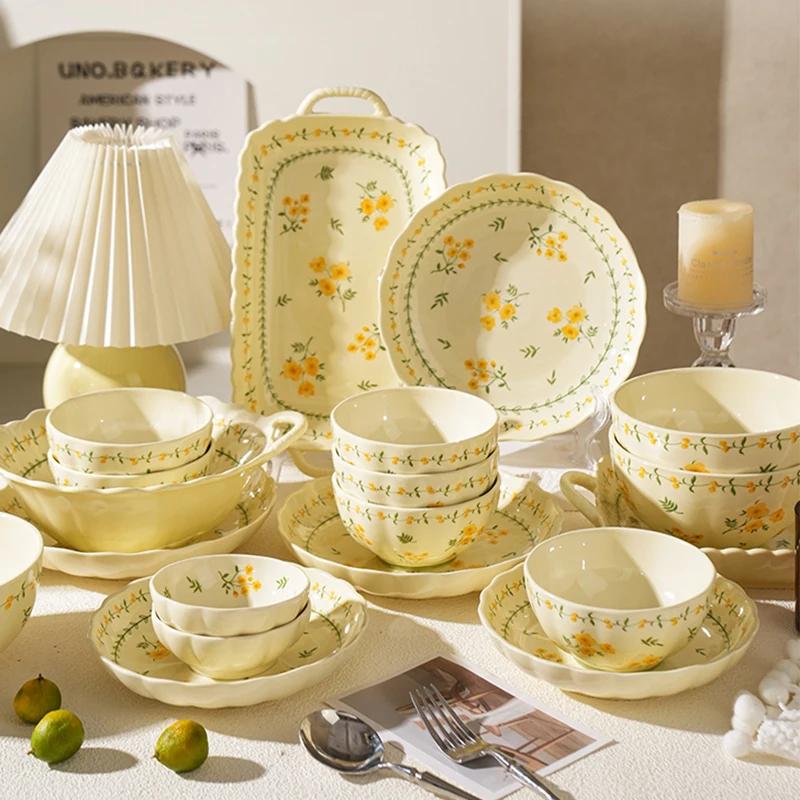 Круглая керамическая тарелка с маленькими цветами для дома, послеобеденного чая, десертов, выпечки, изысканной завтрака, салата, креативной посуды — купить товар онлайн с бесплатной доставкой по всему миру!