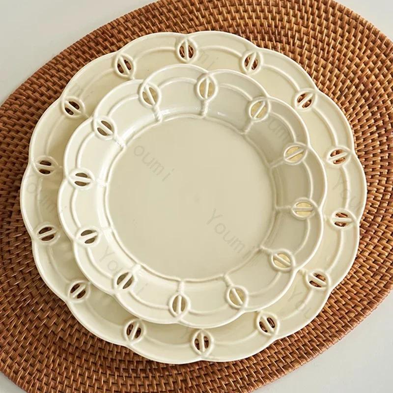 Креативная однотонная керамическая тарелка, роскошные ресторанные тарелки для пасты, уникальные полые десертные тарелки, бытовая посуда