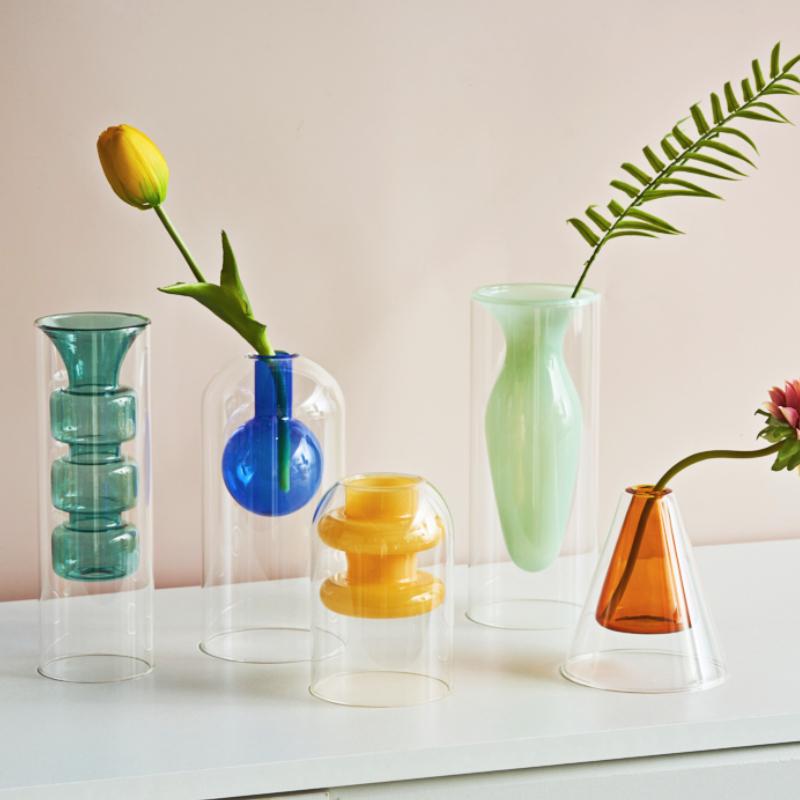 Стеклянная ваза Художественные украшения Цветочная ваза для растений Домашний декор Аксессуары Настольные поделки Террариум Украшения для гостиной