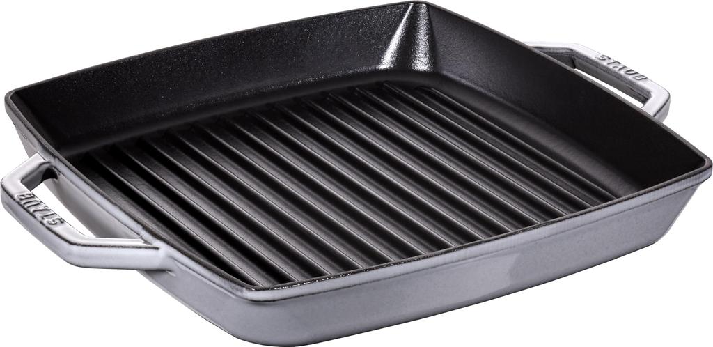 Staub Grill Square Grey Grill, совместимая с японским грилем литая сковорода IH "Pure 28 см", сковорода, ручки, металл, эмаль, [Авторизованный продукт] и