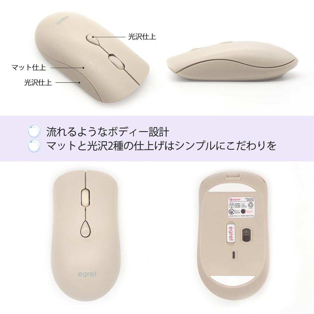 Bluetooth rechargeable silent wireless compatible with 2 EGRET SweetiE & 2.4G, mouse, PCs, 3-tier DPI, cute, stylish, beige, lightweight, (milk tea)