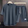 Мужская корейская мода вафельный комплект из двух предметов, летняя футболка с короткими рукавами и шорты, свободные комплекты, мужская дизайнерская одежда, спортивные костюмы