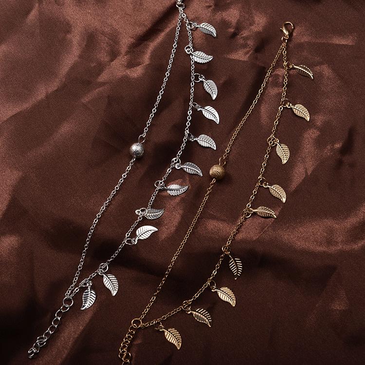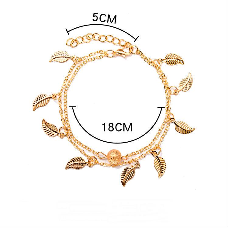 Модные пляжные украшения для ног в виде листьев, простые двойные кисточки, национальный женский браслет на лодыжку с маленькими листьями, AVE