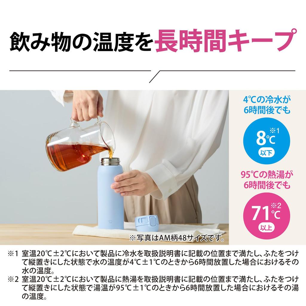 Бутылка для воды ZOJIRUSHI бесшовная 480 мл кружка из нержавеющей стали One Touch Airy Blue Интегрированная упаковка означает, что нужно мыть только 3 предмета SM-WS48-AM