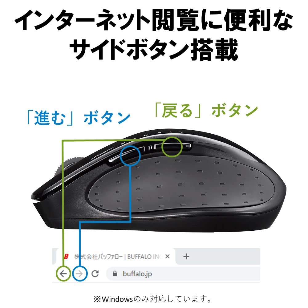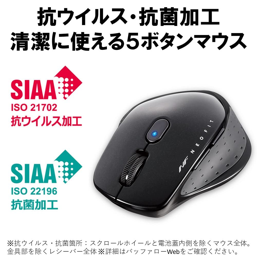 Беспроводная мышь Buffalo BlueLED Neofit с 5 кнопками, размер M, черная, BSMBW515MVBBK, антибактериальная/противовирусная