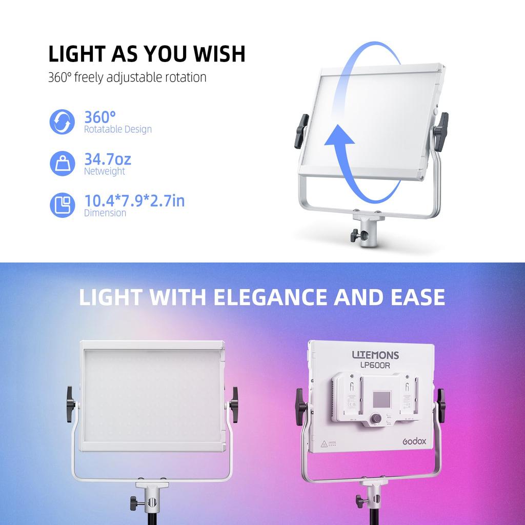 Полноцветный режим RGBW: Панельная лампа LP600R имеет профессиональные цветовые режимы, такие как CCT, HSI, RGBW, GEL