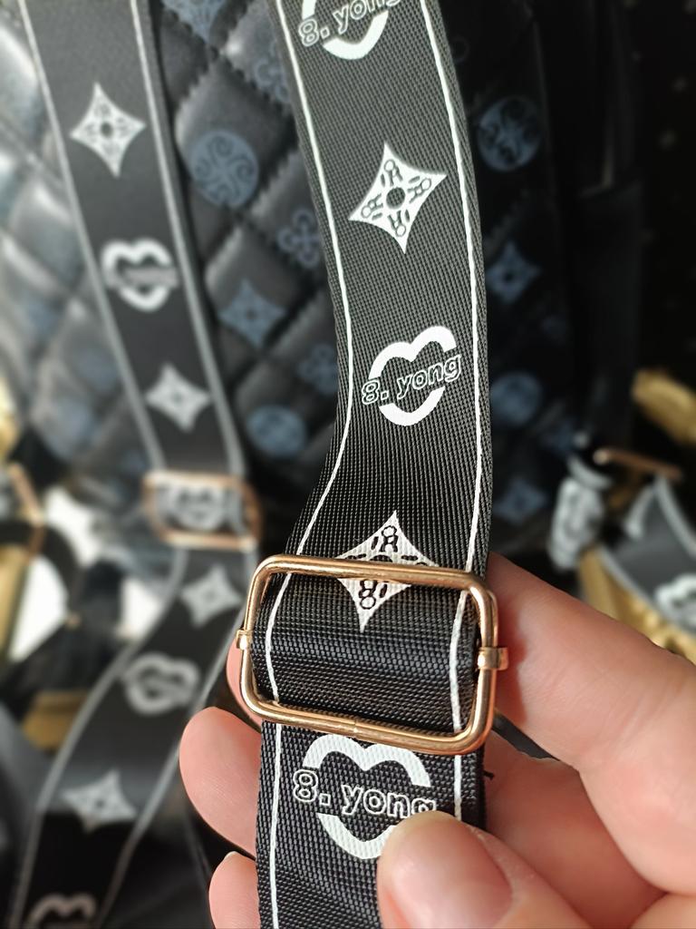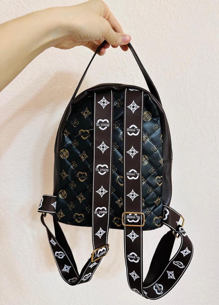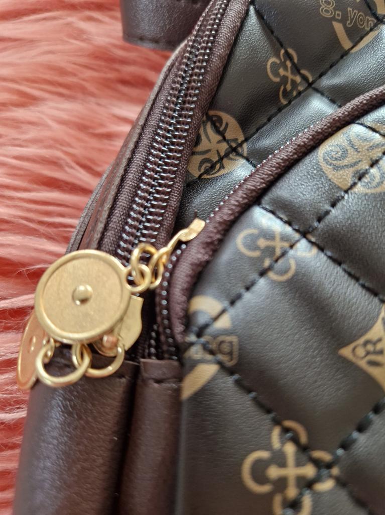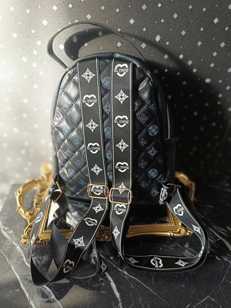 Симпатичный рюкзак. Выглядит очень даже прилично, несмотря на небольшую цену. Вполне объемный такой рюкзачок, его размеры 25х20 см. И выглядит аккуратно, и поместится все, что нужно. К тому же, рюкзак очень лёгкий. Цвет я выбрала самый простой, черный. Подойдёт подо все, и носить можно и зимой, и летом. Рюкзак стёганый. На черном фоне серые монограммы. На передней части большой карман, закрывающийся на молнию. Застёгивается рюкзак на молнию, внутри одно отделение. Подкладка атласная, черная. Ремни в цвет рюкзака, черные, тоже с монограммами. . Они регулируются. В качестве украшения - металлическая бабочка. Вся фурнитура красивого золотого цвета.