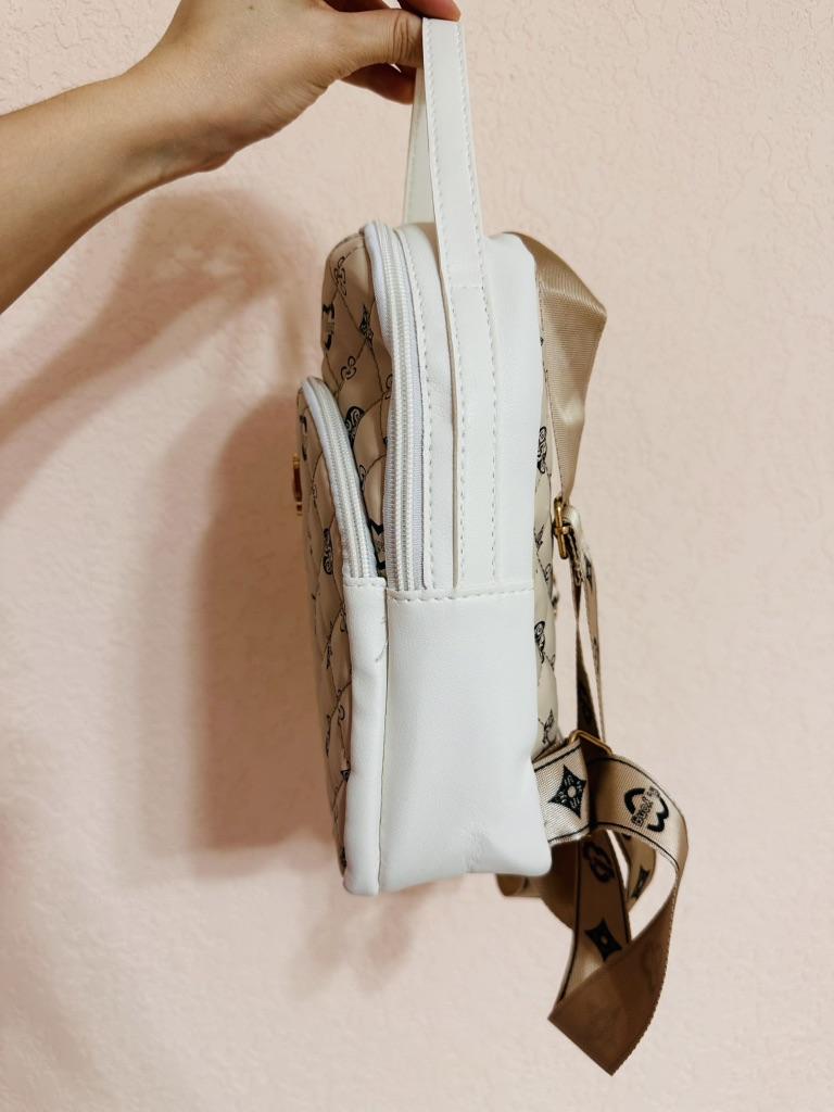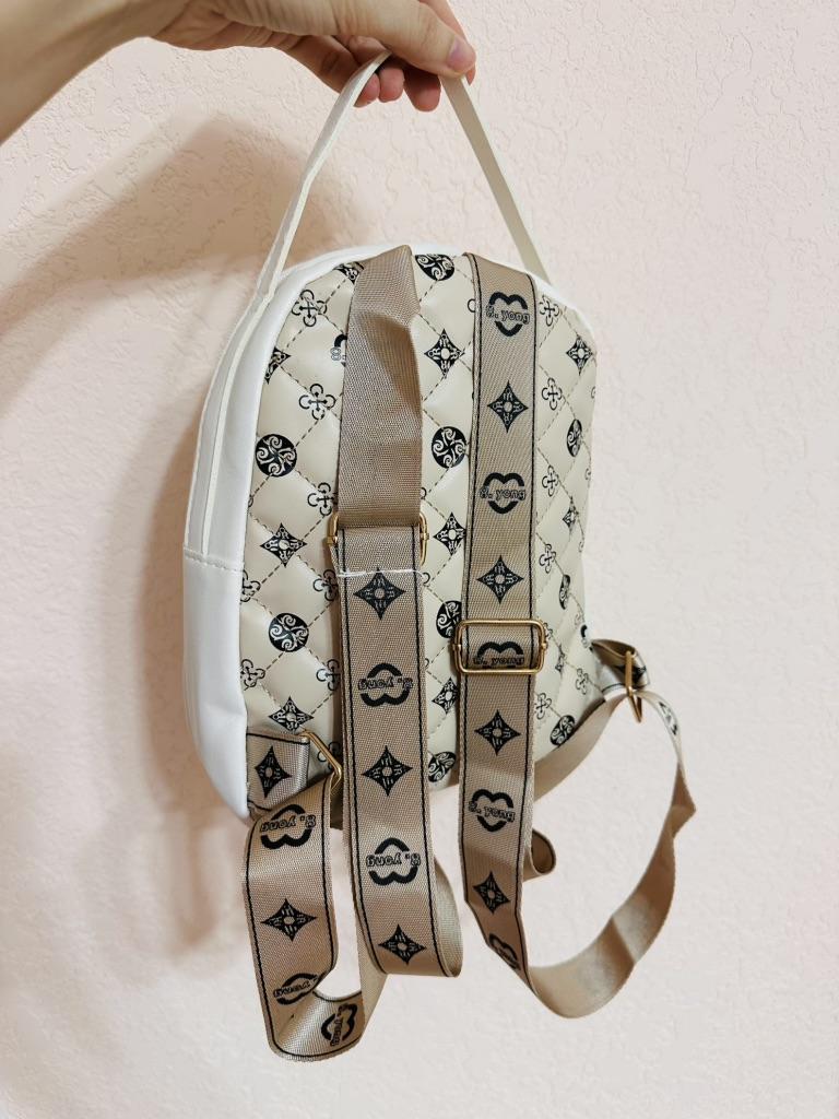 Милый стёганый рукзак! ✔️Изготовлен из кожзама с напечатанным рисунком. ✔️ Ремешки регулируются, на ремешках имеется крупная надпись белого цвета смотрится довольно красиво . ✔️Рюкзак имеет ручку широкую и удобную. ✔️Украшен рюкзак металлической бабочкой белого цвета с лицевой стороны. ✔️ Есть кармашек накладной с лицевой стороны который закрывается на молнию. ✔️У продавца в наличии есть ещё варианты цветов. ✈️Посылка шла около двух недель до Молдовы, Кишинёв. 📌Посылка была упаковано хорошо. 📌Товар без брака. 📌Дизайн красивый. 📌Качество хорошее. 😍Рекомендую и ещё раз рекомендую к покупке!!!