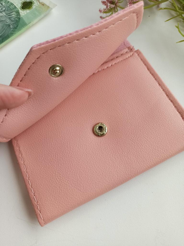 Женский небольшой кошелек. Изготовлен из полиуретана. Пошит аккуратно, строчки ровные, фурнитура в цвет. Застёгивается на кнопку. Кошелек имеет одно большое отделение для купюр, и отделения для карточек. Размер кошелька 11,5 см × 9 см Пришёл хорошо упакован без постороннего запаха. Кошелек понравился Всем удачных покупок.