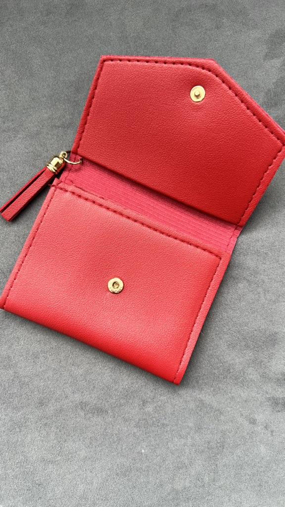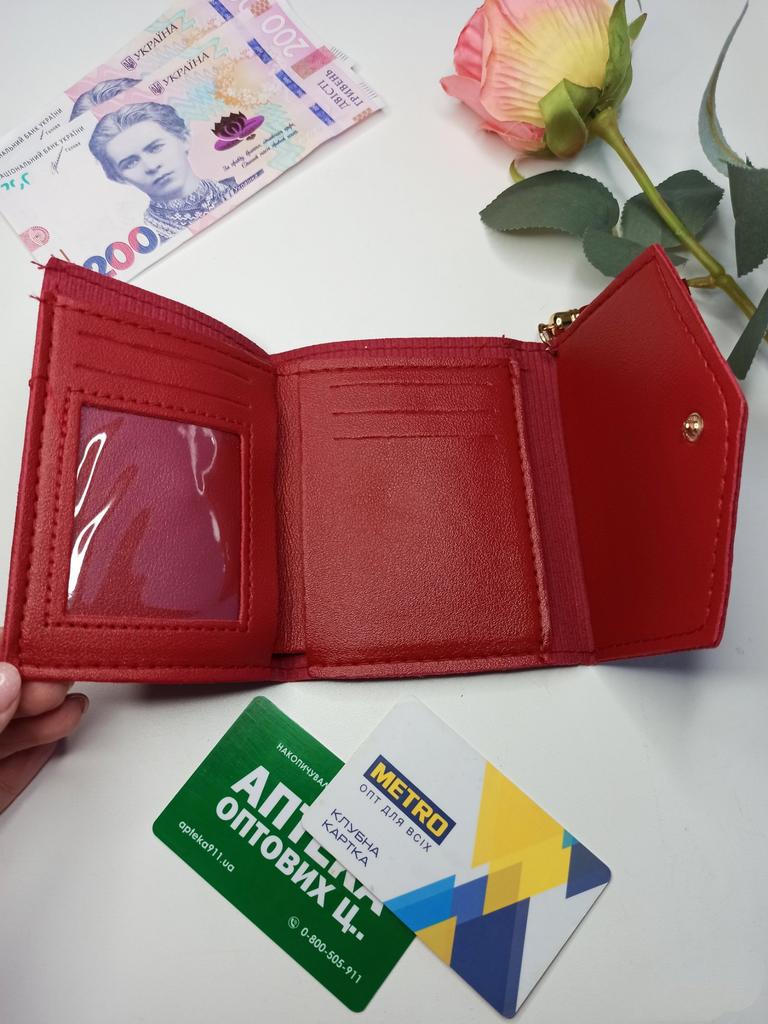 Небольшой женский кошелек Кошелёк небольшой: 11,5см. на 9см. свободно помещается в маленькую сумочка и даже в карман. По ссылке кошелёк есть в разных цветах. Я заказывала красный - цвет соответствует фото продавца. Выполнен кошелёк аккуратно, строчки ровные, нитки подобраны в цвет кошелька, материал- кожзам. Застёгивается он на кнопку. Всредине один большой отдел для купюр, 5 отделов для карт/визиток и 3 маленьких потайных кармашка. Кошелек понравился.